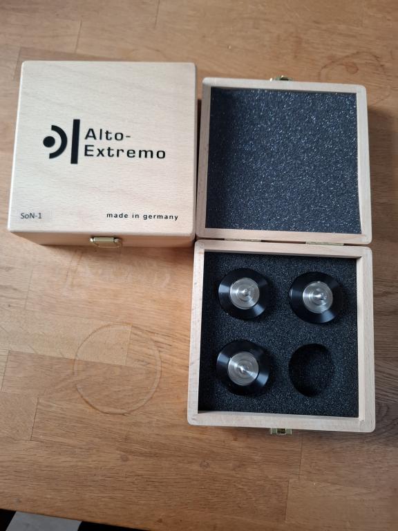 Ein Produkt der Firma Alto-Extremo entwickelt speziell für Soulnote Geräte. 2 Sätze vorhanden. Bei Abnahme von beiden Gesamtpreis 650 Euro. Privatverkauf ohne Rücknahme oder Garantie. Verkauf erfolgt nur da ich meine Soulnote Geräte in Zahlung gegeben habe. Erwirken eine deutliche Verbesserung gegenüber den einfachen Spikes die mitgeliefert werden. Für Rückfragen stehe ich gerne zur Verfügung.