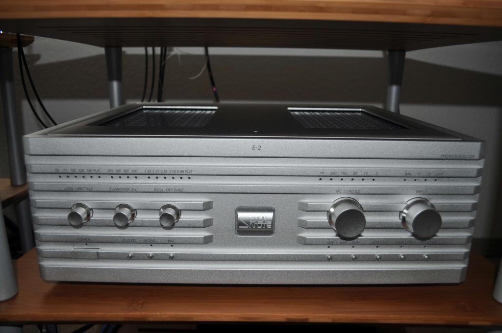 Der E-2 ermöglicht den gleichzeitigen Anschluss und das Umschalten zwischen vier Eingängen: Symmetrische MC-Eingänge, unsymmetrische MC/MM-Eingänge (2 Typen) und spezielle Eingänge für fotoelektrische Tonabnehmer.