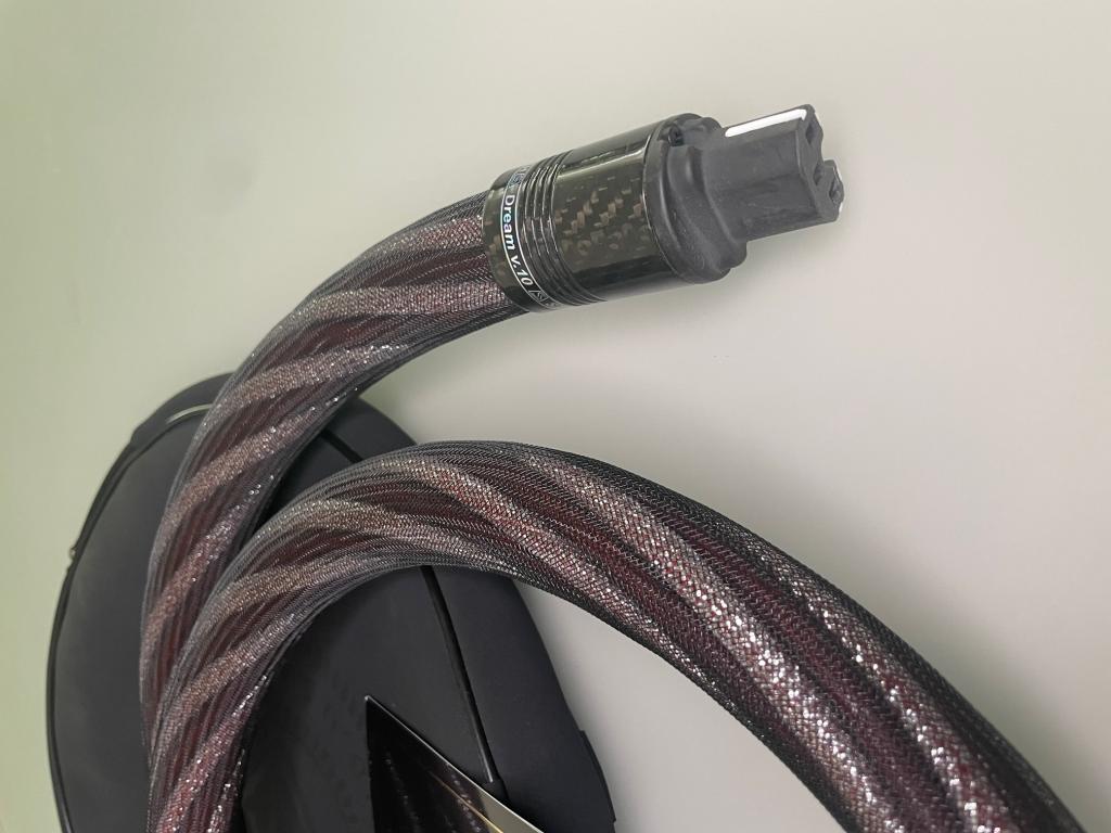 The Dream V10 AC power cables are very thick (approximately 35 mm = 1.38 inches in diameter), but flexible.