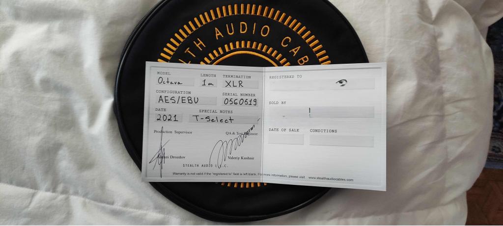 Here on sale the top of the range Stealth Audio Octava T-Select AES/EBU Xlr 1 mt. Model with collar. How to say? One of the best digital cable in the world. No signs. Normal use . Never moved from the original position. One owner, me. Rarely seen on the second market. I have two. Now I need only one.