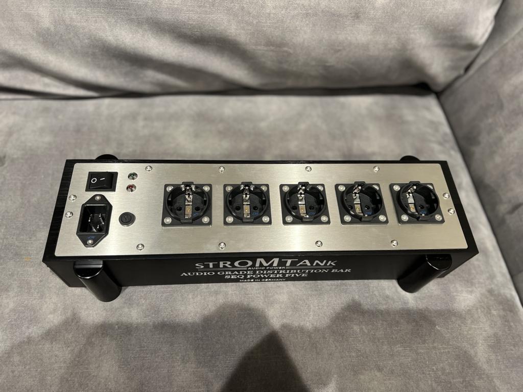 Selling StromTank SEQ-5 Power strip. Comes with full original packaging, main cable, perfect visual and technical condition. If needed I have invoice, also can sell without VAT if you have company. Free postage.