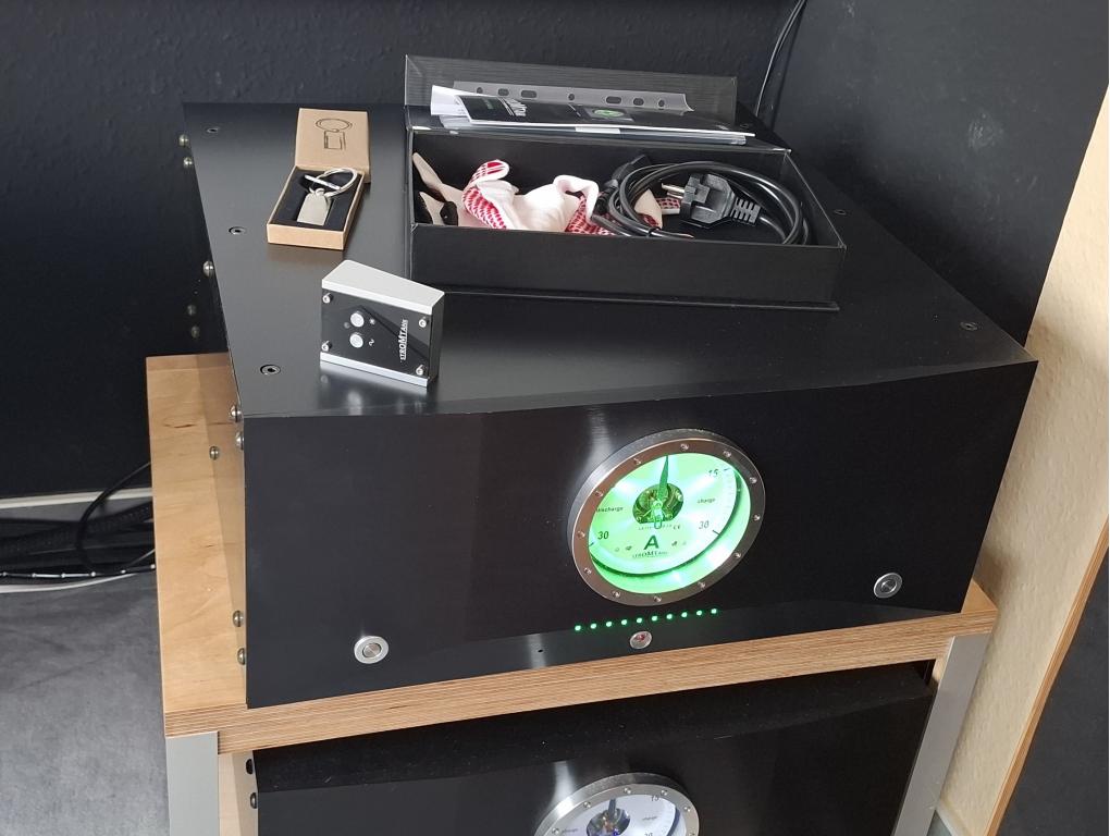 Seitdem steht er im tier- und rauchfreien Musikzimmer. Mit den beiden Stromtanks S1000 habe ich problemlos zwei große Pass Class A Monoendstufen, je eine pro Stromtank, zuzüglich den Quellgeräten verteilt, betrieben.