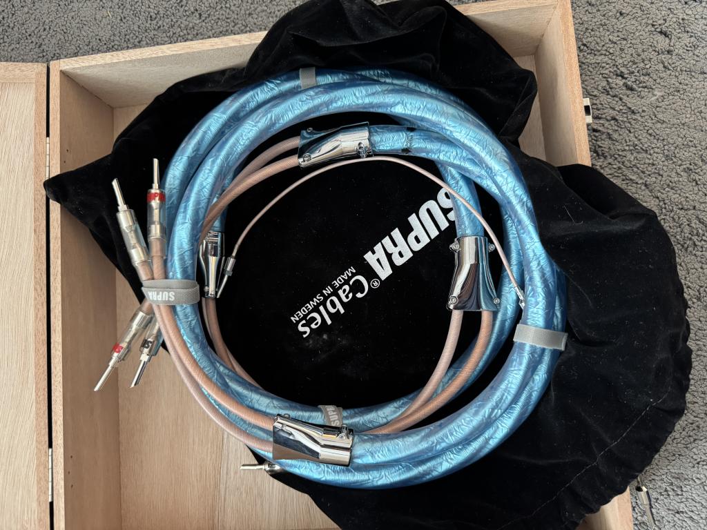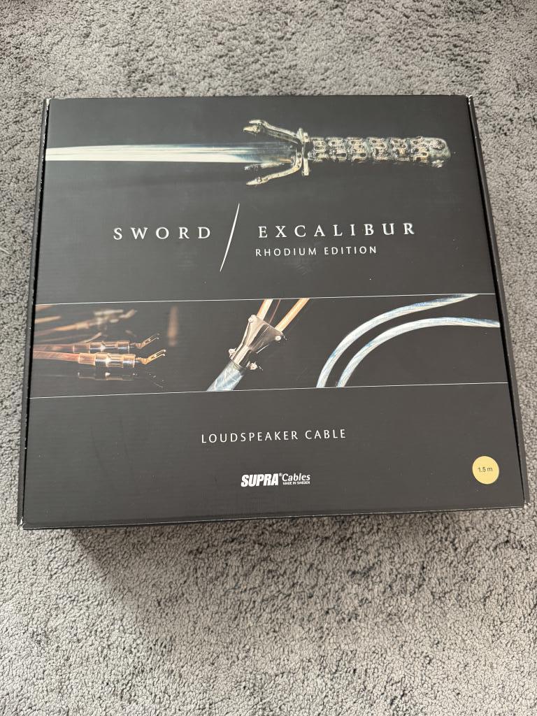 Here we sell an used but mint condition pair of Supra Sword Excalibur speaker cables in 1.5m.