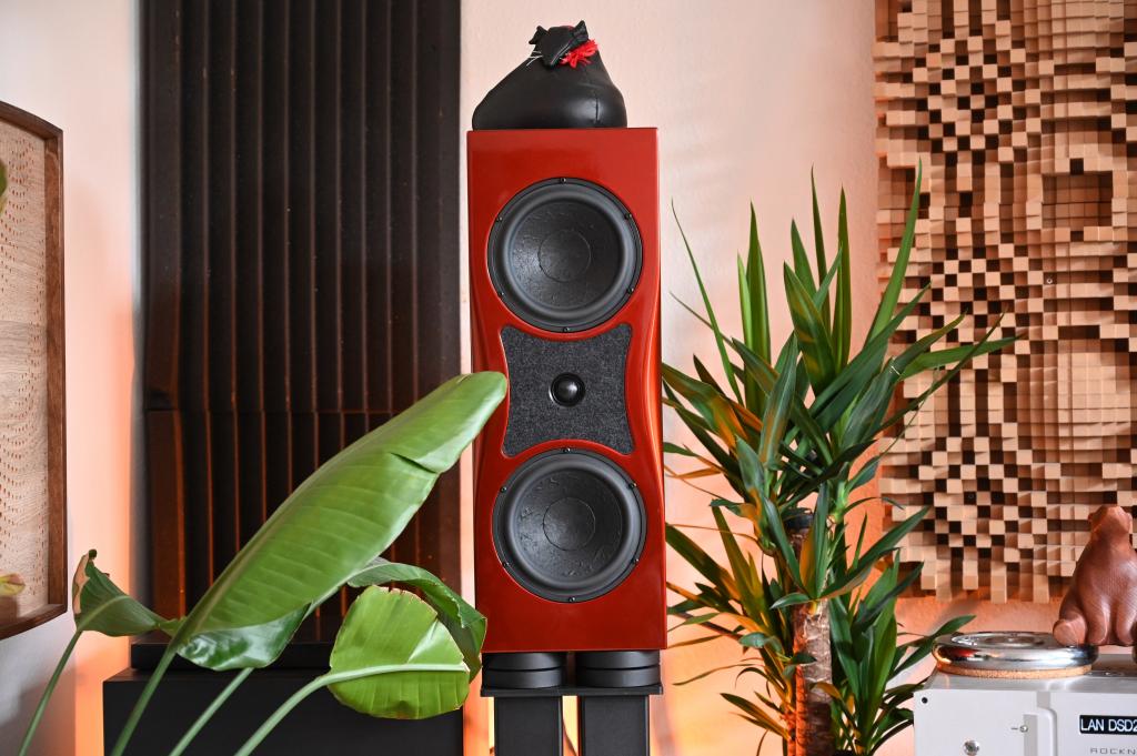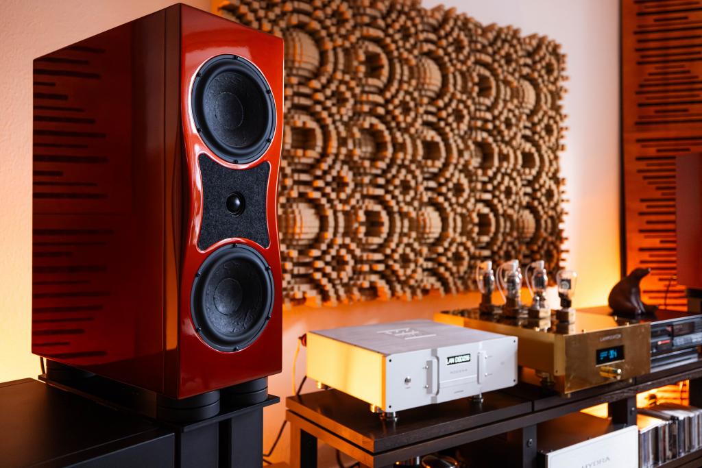 Reference-grade wiring and custom drivers – Internal wiring by Duelund: 16AWG for woofers and solid-core silver for tweeters. Speaker diaphragms are coated with C37 lacquer to optimize sound. Driver modifications include a redesigned tweeter chamber and damping material, added damping to the woofer baskets, and copper shorting rings in the woofers.