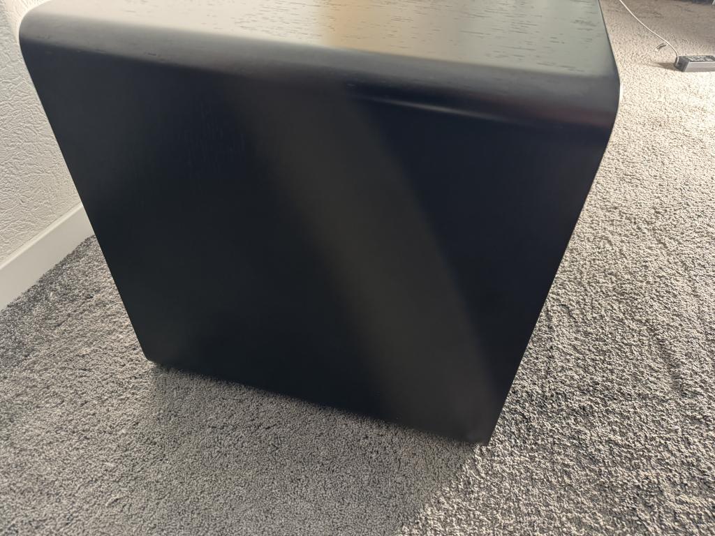 Der Subwoofer befindet sich in einem sehr guten Zustand, mit leichten Gebrauchsspuren.
