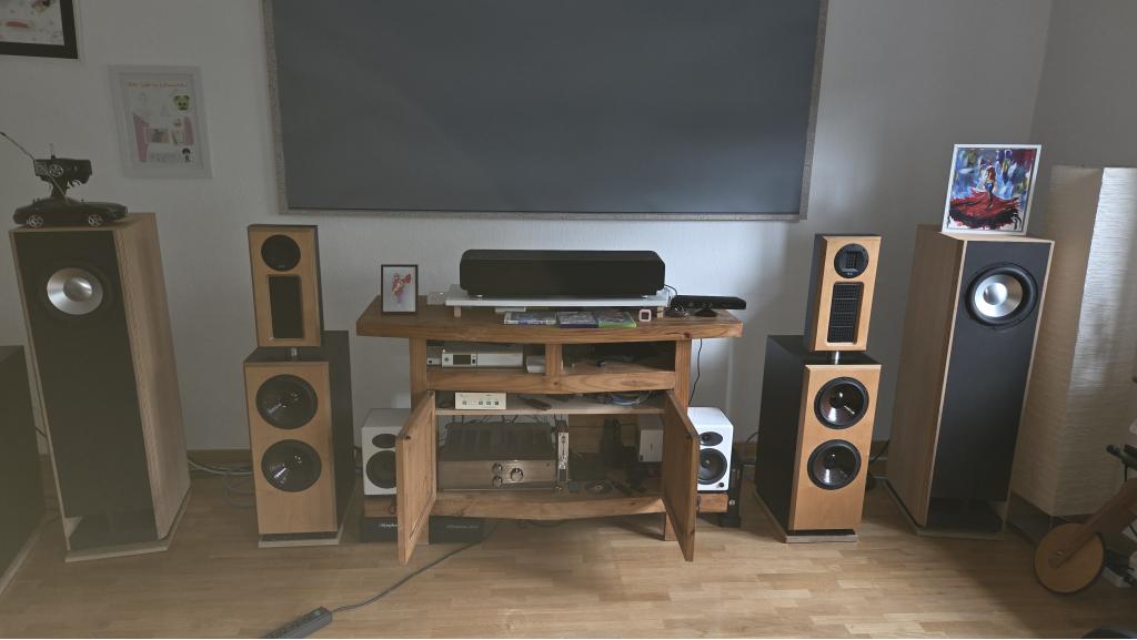 - Lautsprecher: Proraum Pro 20D (2200 €). Die Lautsprecher wurden in der Hobby Hifi 01/08 beschrieben und in der 20.000 € Klasse eingestuft. Zuvor hatte ich mal die Quadral Titan MK III, Infinity Kappa 9 und Infinity IRS Epsilon. Keiner dieser Lautsprecher kann der Pro 20D - von der Magie her - das Wasser reichen. Ich habe nur einmal was besseres von Acapella (ca. 70.000 €) gehört. Die "x&y" 801 hatte man vielleicht falsch angeschlossen.