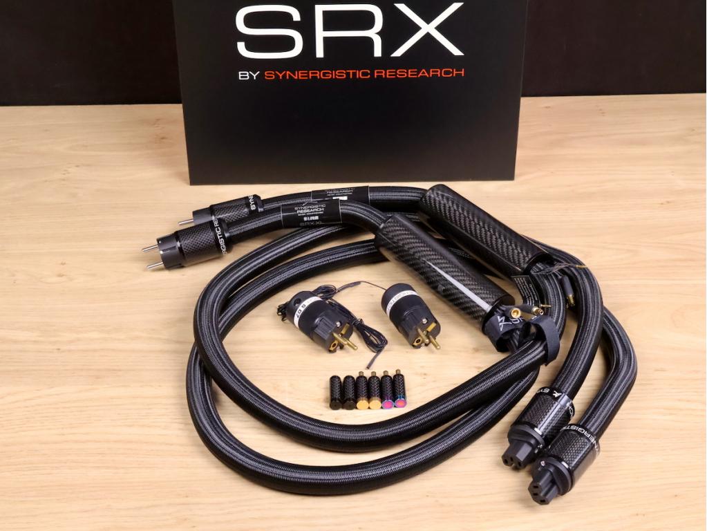 Two Synergistic Research SRX XL high end audio power cable in an absolute mint, like new condition (used for one short demo only). SRX XL takes SRX’s industry-leading dynamics to a whole new level while also improved nearly all aspects of its performance, including sound staging, lower noise floor, and increased high-frequency extension with added smoothness. Voicing the cables to your system is made easy with supplied Gold and Master carbon tuning modules.