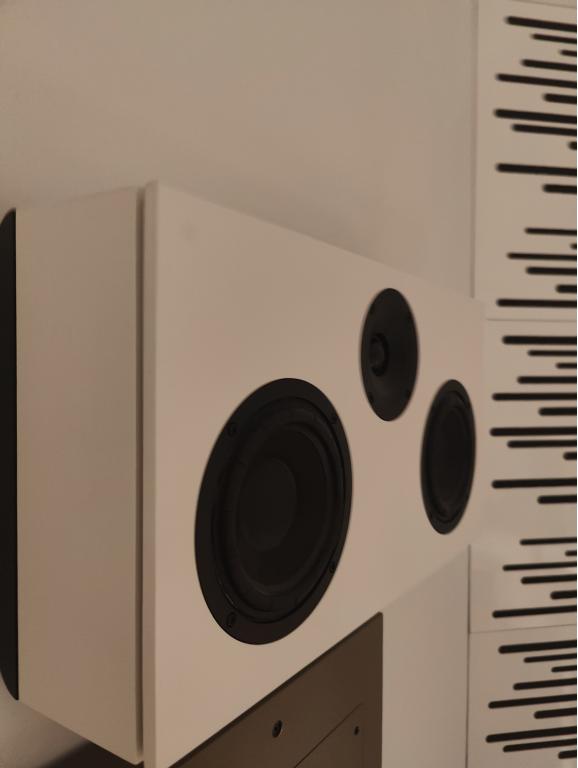 A pair of active on wall speakers. Was used only in our showroom, excellent condition, excellent bass response, very musical. Could work with Wisa wireless adapter or could be switched with source - streamer, preamp by XLR cable. This model is EISA nominated.