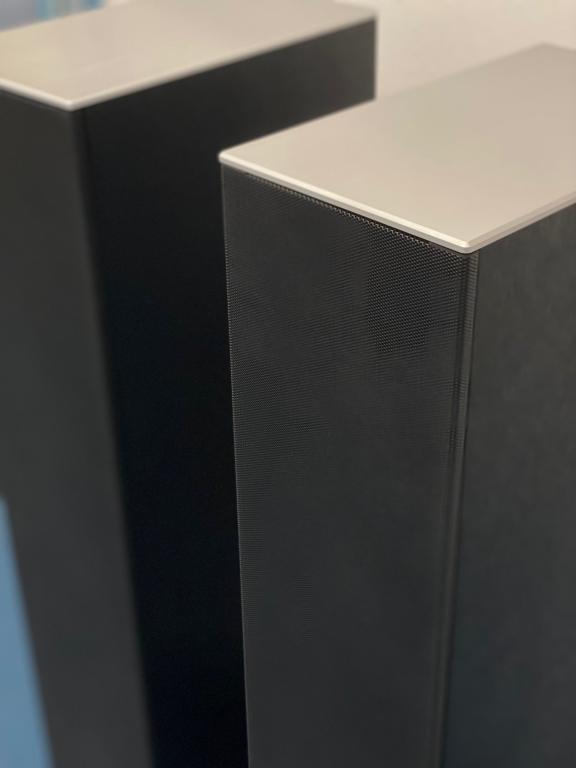 Die Gehäuse verfügen dank der ausgefeilten Konstruktion des Korpus über eine enorme Stabilität und Festigkeit. Die starke Schallwand ermöglicht die komplette Abdeckung der Chassiskörbe durch genau berechnete Montageringe aus Aluminium, die für eine optimale Ausbreitung des Schalls auf der Schallwand sorgen und das Rundstrahlverhalten im Übernahmebereich zwi-schen den Tief- und Mitteltönern sowie zur Hochtonkalotte optimieren. In der Entwicklung wurde komplett auf scharfe Kanten oder störende Schrauben verzichtet, sodass sich der Schall ohne Reflexionen ausbreitet und ablöst. Die schmale Schallwand dient damit nicht nur dem eleganten Design, sondern ebenso dem Abstrahlverhalten und der Räumlichkeit.