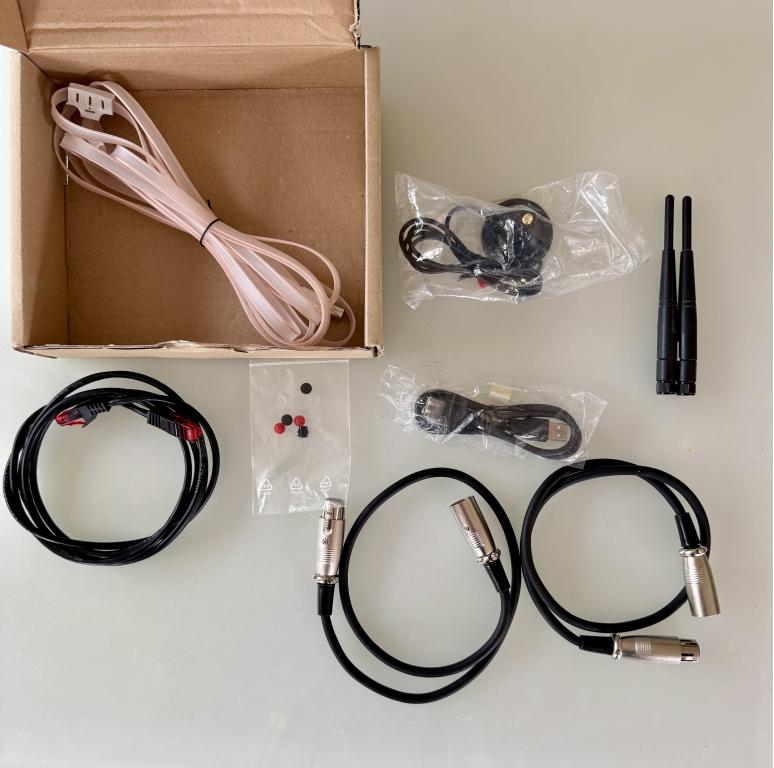 Zubehör:• 2x XLR Stageline HQ Low Noise Kabel (OFC, 0,75 m)• 1x R2-Linkkabel• 1x WLAN-Antenne