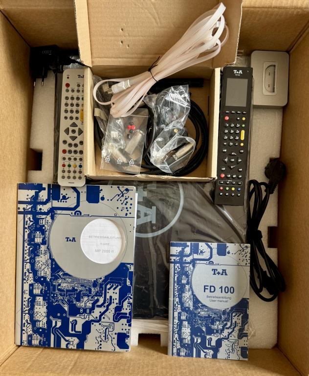 Erweiterung / Ausstattung:• Gateway GW E MP 2000 R (für FB 100, bereits integriert)• T+A FB 100 HG – bidirektionale Fernbedienung mit Station inkl. Beschreibung• T+A FM 2000 – Infrarot-Fernbedienung