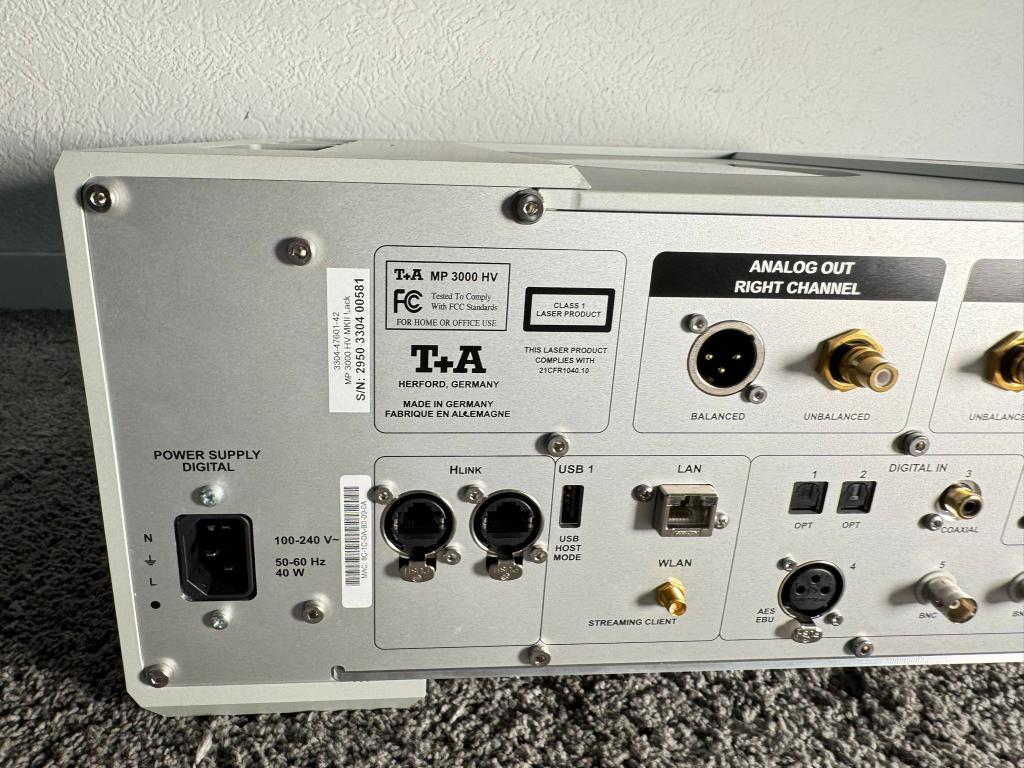 Here I sell a mint condition T+A MP 3000 HV MK2 mediaplayer in silver, it was serviced from T+A in November 2025.