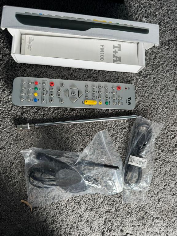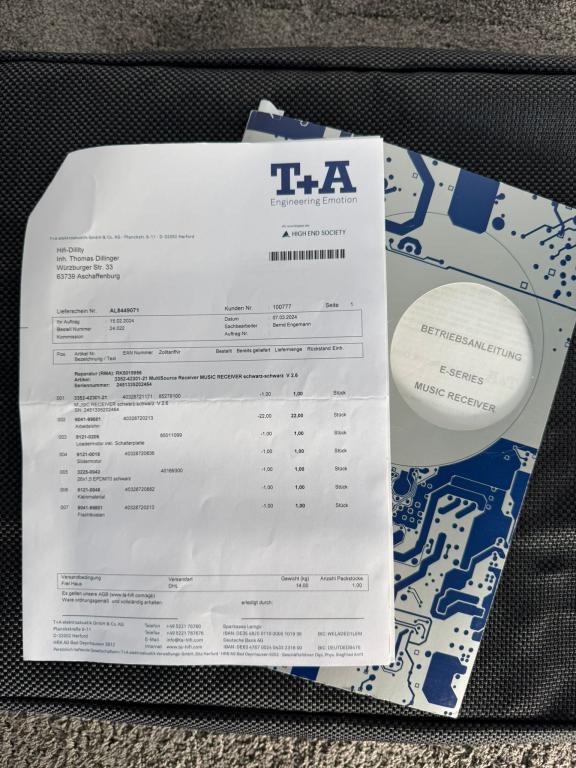Im Lieferumfang enthalten ist: T+A Music Receiver, Netzkabel, Fernbedienung, Antenne und eine originale T+A Verpackung.