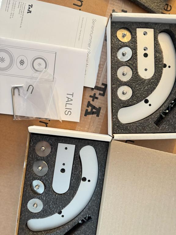 Im Lieferumfang enthalten ist: Das Paar T+A Talis S300, Abdeckungen, Brücken, Spikes und die originale Verpackung.