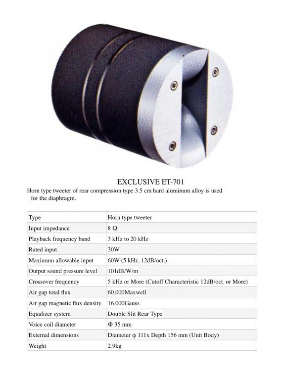 the ET-701 as a tweeter adds a more natural and pleasing character to the top octave.