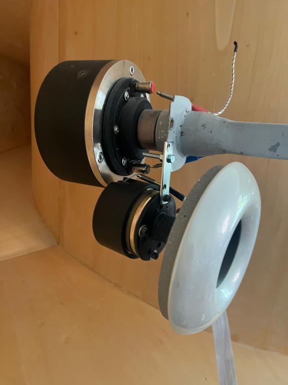 Sandgefülltes Dauphinhorn von Norbert Gütte mit TAD 2001. Alternativ: Elysio-Horn im Weiß. Dann ist aber ein Umbau des 2001 erforderlich. Dieses kann in das Sato gehängt werden.
