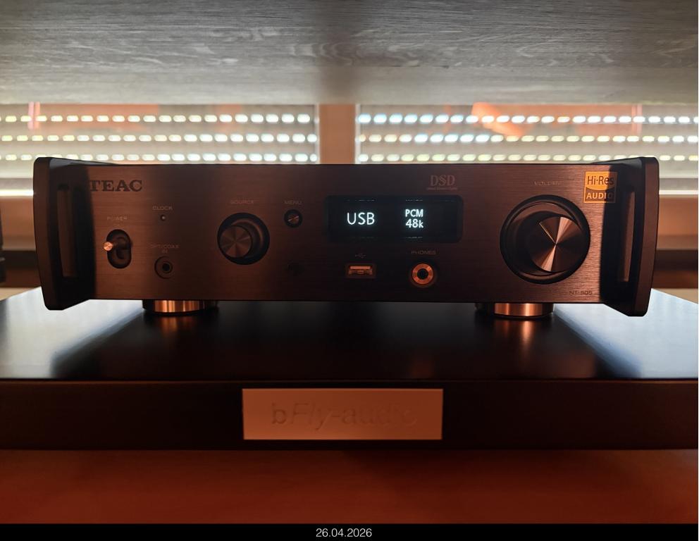 Der TEAC NT-505-X ist ein kompakter USB-Netzwerk-DAC/Vorverstärker im A4-Format, der für High-Res-Audio (bis DSD 22,5 MHz, PCM 768 kHz/32 Bit) mittels dualer ESS ES9038Q2M Wandler ausgelegt ist. Er bietet umfassende Streaming-Funktionen (Roon Ready, MQA-Decoder, Tidal, Qobuz, Spotify) sowie Bluetooth aptX. Das Gerät überzeugt durch eine symmetrische Schaltung, hochwertige XLR/Cinch-Ausgänge und ein massives Metallgehäuse.