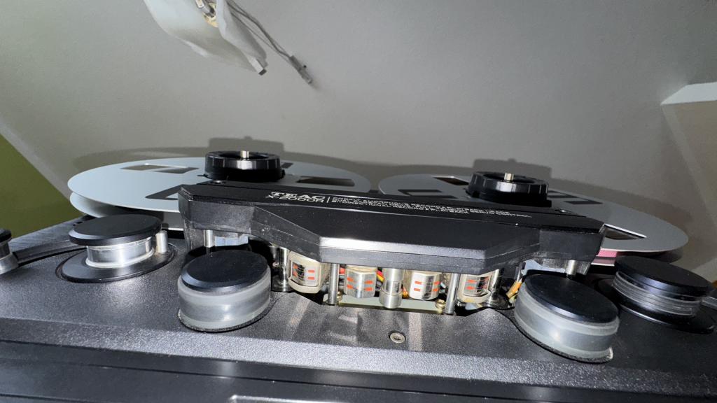 Zum Lieferumfang gehört eine Original Kabel-FB, zwei schwarze originale Tascam-Spulenadapter, eine 26,5cm-Leerspule, sowie eine originale Acryl-Spulenabdeckung, welche alters- u./o. pflegebedingt schon etwas trüb ist, jedoch nicht beschädigt.