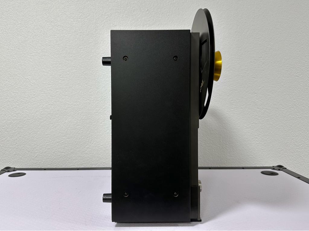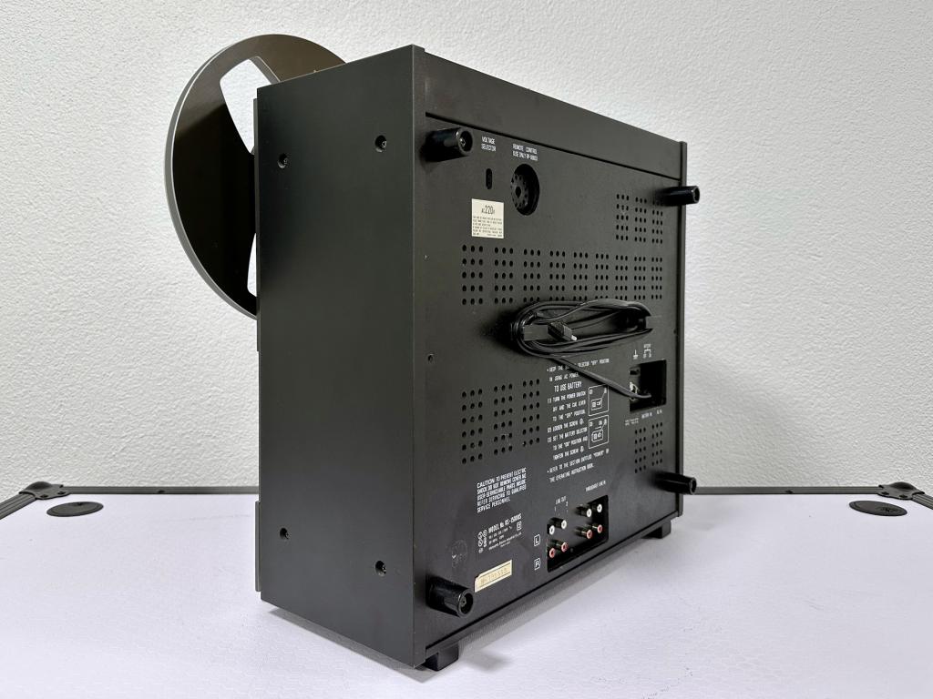 2-Spur, 3 Geschwindigkeiten, 9,5/19/38 cm/s, zusätzl. 4-Spur Wiedergabekopf, VU-Aussteuerungsanzeigen, eine der am "best designten" großen Spulenmaschinen aus der Hochzeit der Bandgeräte.