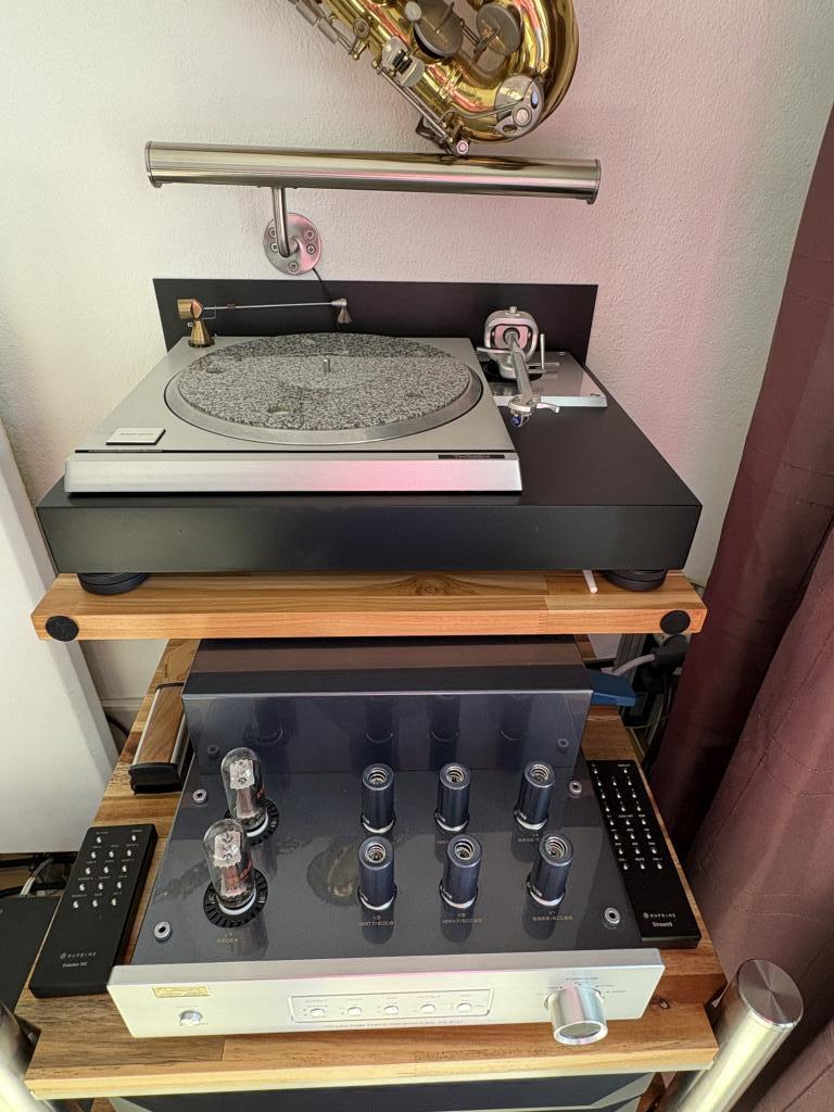 Plattenspieler ist im Betrieb und Probehören ist natürlich möglich.
