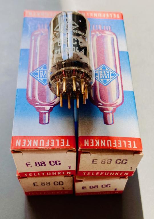 6 Stück neuwertige Telefunken-Röhren E 88 CC in Originalverpackung.
