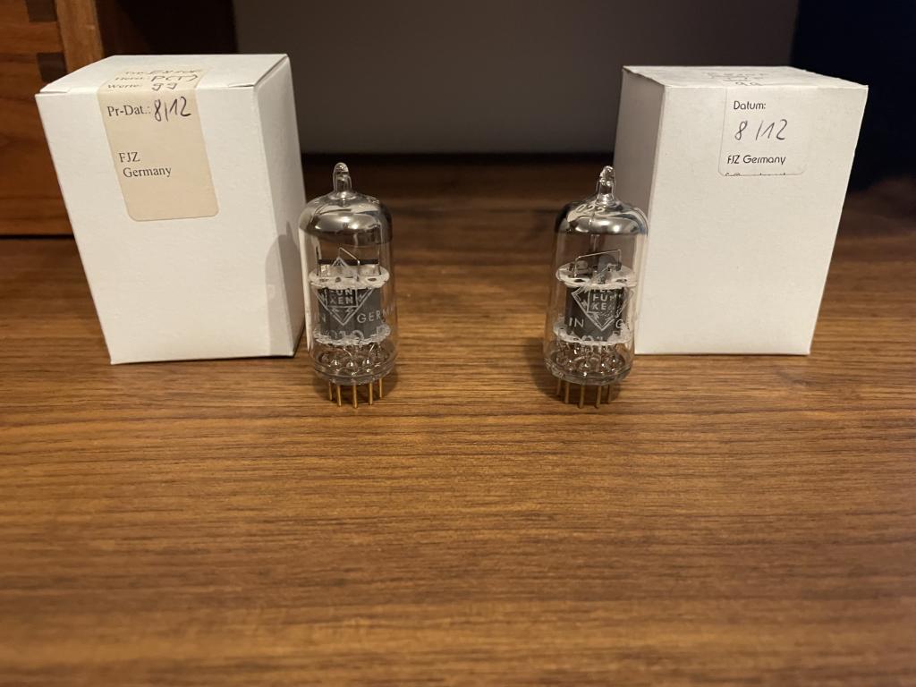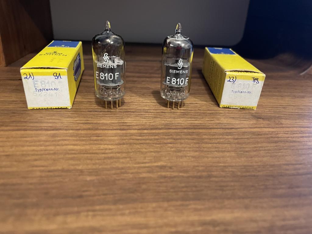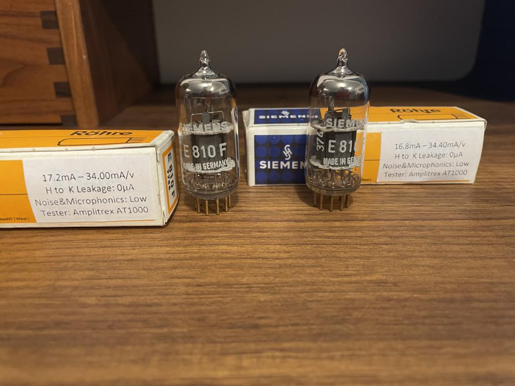 5) Siemens E810F, Gold Pins, NOS, NIB, matched (33,7mA + 32,4mA), Made in Holland (Heerlen), (SOLD)