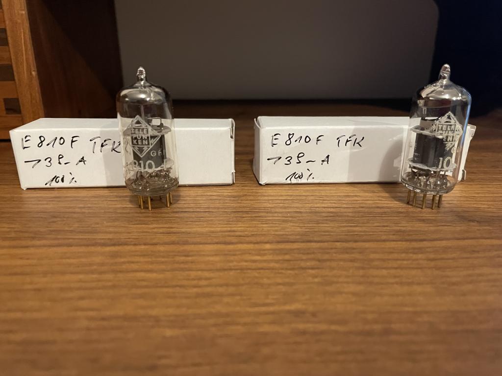 8) Telefunken E810F, Gold Pins, NOS, matched (>38mA + >38mA), Made in Germany (SOLD)
