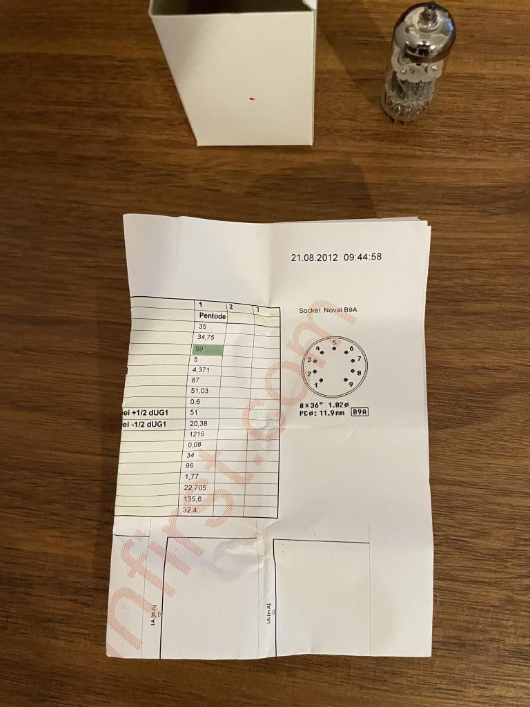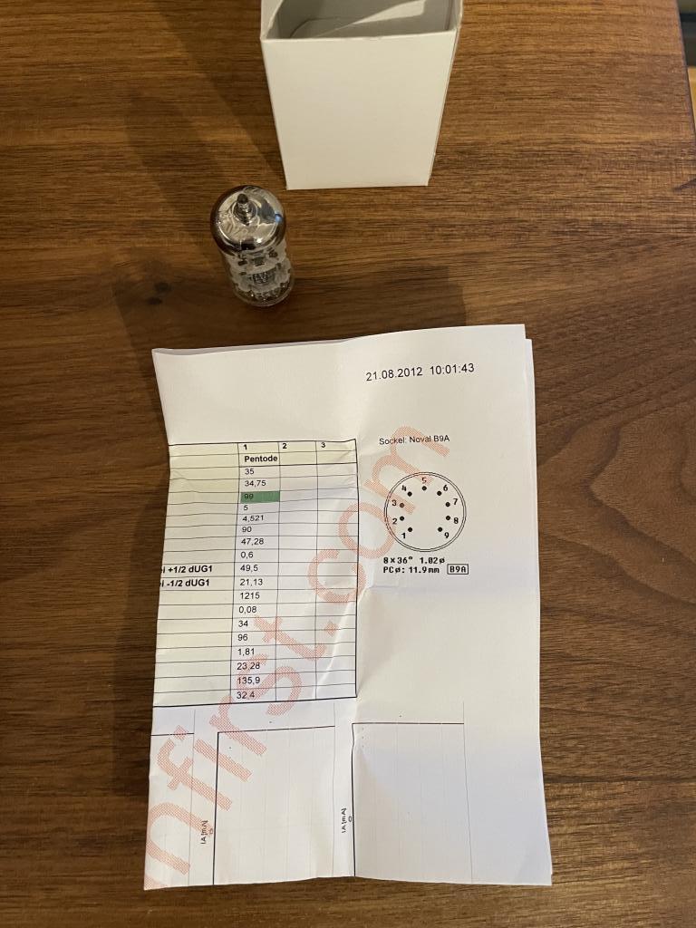 9) Telefunken E810F, Gold Pins, NOS, matched (34,75mA + 34,75mA!), Made in Germany (SOLD)