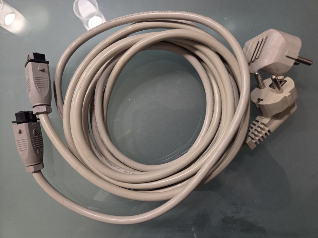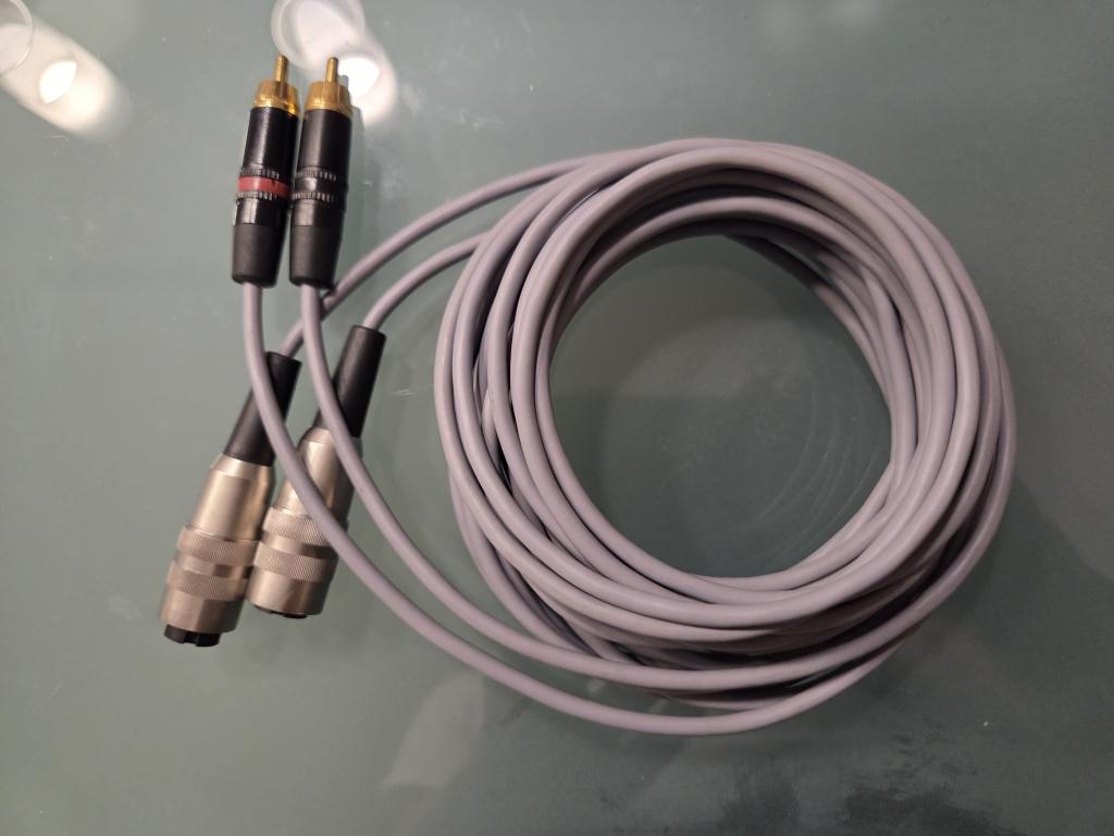 Die nur noch selten aufzutreibenden Stromkabel mit den Spezialsteckern sind dabei. Ebenso die Mini Tuchel Kabel zum Vorverstärker, derzeit mit Cinch Anschluss konfektioniert (> 4m Länge).