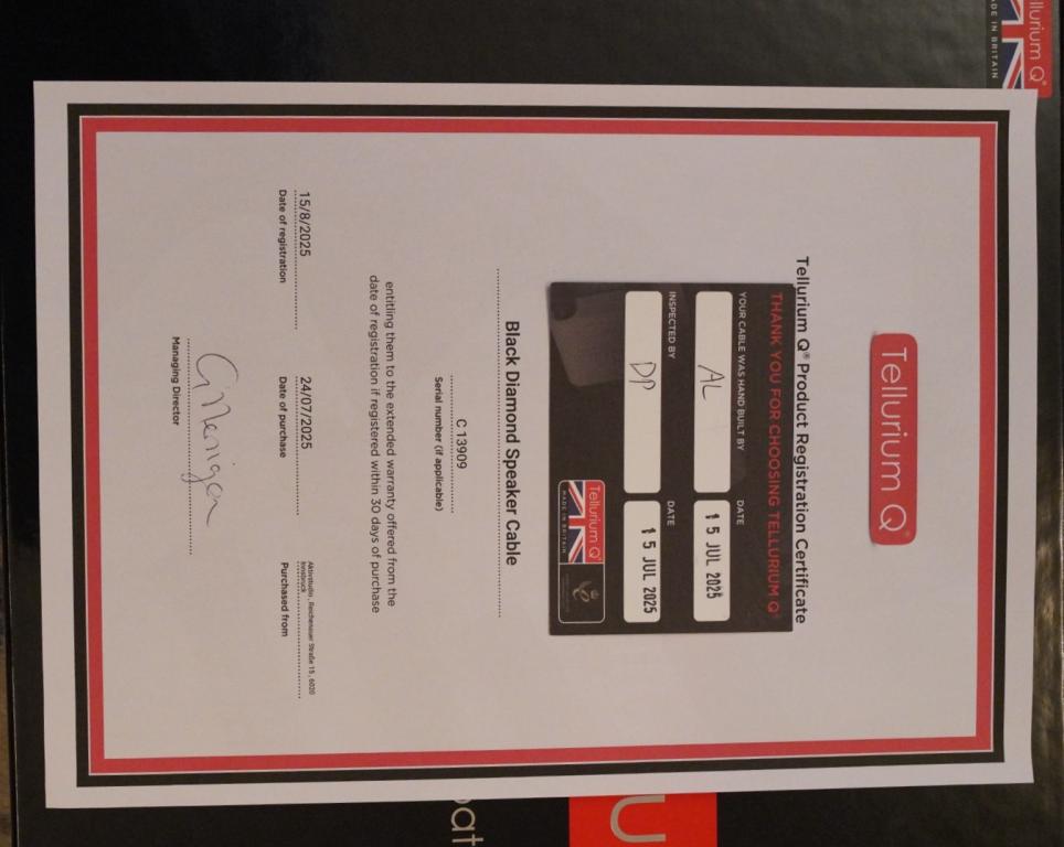 Ich biete hier 2 X 1.5m Lautsprecherkabel der TOP-Serie " Black Diamond " an. Die Kabel sind im Juli 2025 beim autorisierten Fachhändler als Neuware gekauft , Alter ca. 5 Monate! Ich bin Erstbesitzer , Rechnung , OVP , Tellurium Q - Einbrenn CD (ungeöffnet in der Originalhülle) vorhanden.
