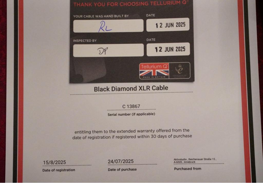 Über die Qualität der Kabel-Manufaktur " Tellurium Q " und die Serie " Black Diamond " muss man nicht viel erzählen , zahlreiche Auszeichnungen und Testergebnisse im Netz !