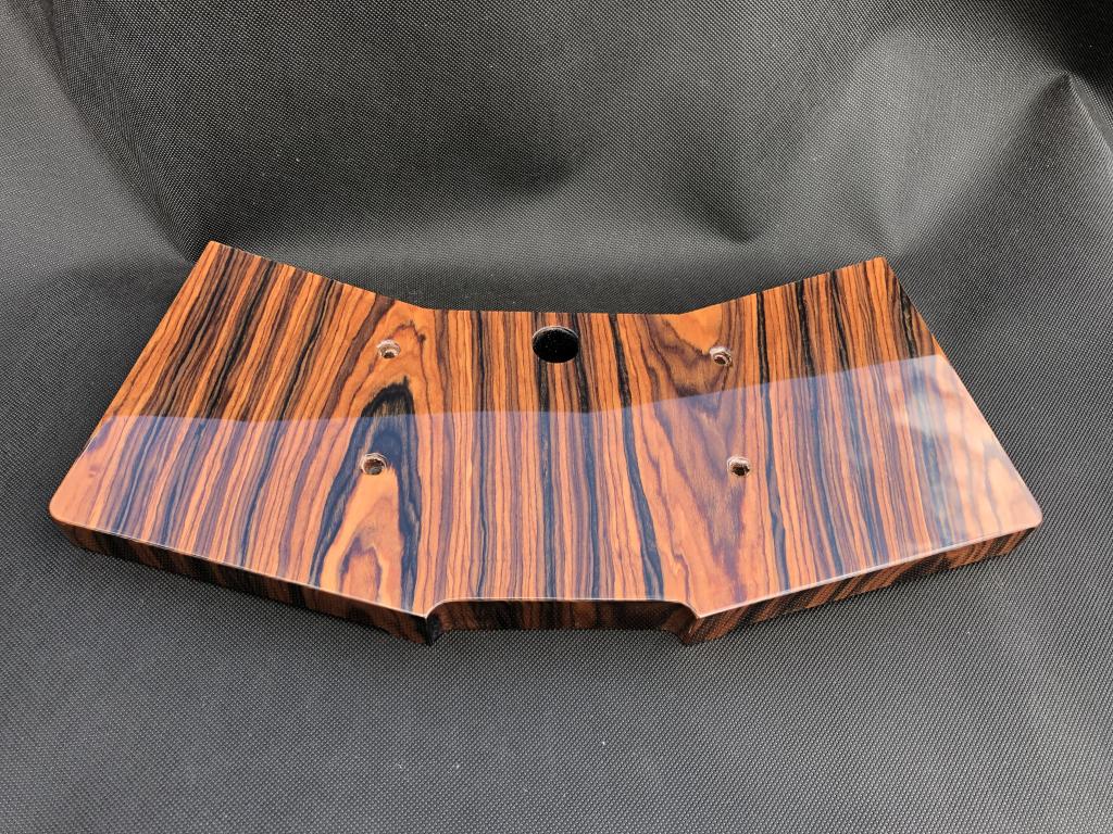 Tentogra Wowo was designed for a wide range of audiophiles due to its size and affordable price. This is how the smallest of my turntables was created, the third in the series after the Tentogra Oscar and Tentogra Gramy VTA models. The inspiration for this model was simplicity and a reference to vintage turntables, if only because of the quick access to all adjustments. The bases extend so that two 9 "-14" arms can be used. Each of the bases is additionally equipped with a tonearm stabilizer. I used a motor like the one in the Oscar model to drive the platter. Each of the speeds of 33, 45 and 78 RPM is activated by a knob on the front of the turntable. The current speed is indicated by a corresponding LED on the turntable head. The engine is a self-contained object unrelated to the structure so as not to transmit vibrations to the plinth. A battery that is not included in the standard equipment can be used for power supply. Tentogra WoWo arms are offered with Kuzma Stogi S-12 ", Kuzma Stogi 313 REF etc. The Tentogra Wowo platter is made of a weighted POM. The turntable weighs 35 kg without accessories. Wowo is available in two basic colors: black and silver. For veneering we use rubywood (padouk), burlwood (walnut) or many others, and we can also apply colors according to the wishes of our customers.