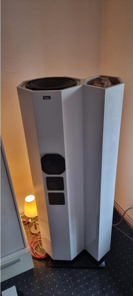 Schweren Herzens biete ich meine Teufel LT-7 Oktopus zum Verkauf an. Es handelt sich um die letzte Konstruktion von Peter Tschimmel, Gründer von Teufel Berlin. Wahrscheinlich handelt es sich um das letzte, funktionierende Paar. Diese Lautsprecher benötigen mind. 30m², eine Endstufe mit mind. 2ooW RMS Leistung. Leistungsangaben folgen. Trotz des Alters spielen die Lautsprecher aktuelle Angebote bis 10000€ in Grund und Boden. Dank der unglaublich langen Transmissionline erreichen sie hörbare 20Hz. Die Lautsprecher sind technisch in gutem Zustand. Optisch existieren einige Kratzer und leichte Abschürfungen. Bei ernsthaftem Interesse bitte ich um Kontaktaufnahme.