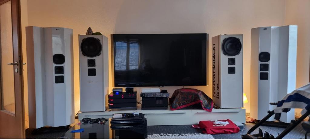 It is with a heavy heart that I am offering my Teufel LT-7 Octopus for sale. This is the last design by Peter Tschimmel, founder of Teufel Berlin. It is probably the last functioning pair. These speakers require at least 30m², an amplifier with at least 200W RMS output. Power specifications will follow. Despite their age, the speakers outperform current offerings up to €10,000. Thanks to the incredibly long transmission line, they reach audible 20Hz. The speakers are technically in good condition. Visually, there are some scratches and slight scuffs. If seriously interested, please contact me.