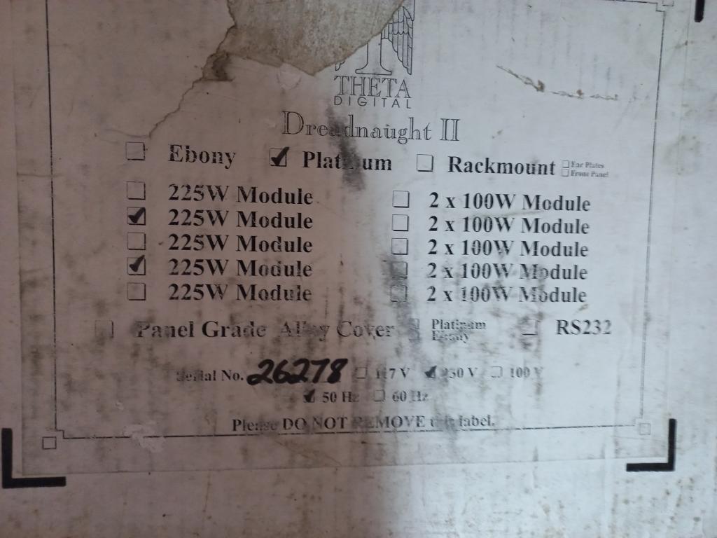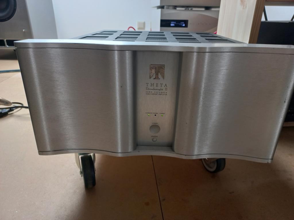 Theta Dreadnaught II stereo amplifier in very good condition, silver and black color. Some marks on the back of the top fascia and face plate - see detail on pictures.