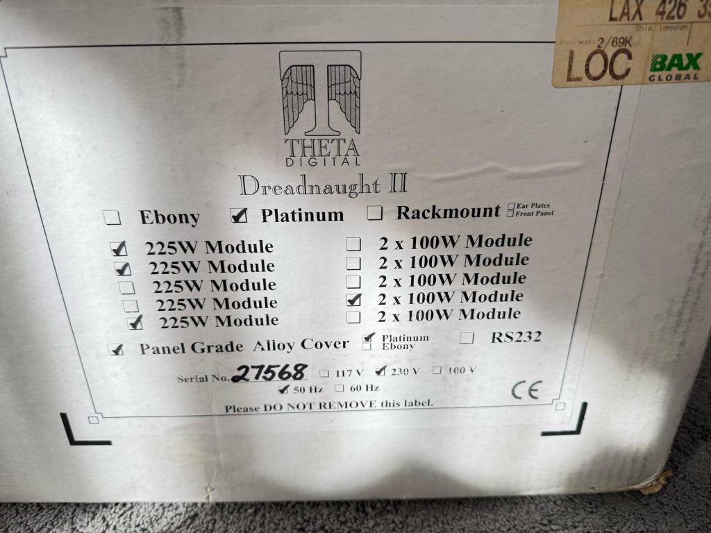 Im Lieferumfang enthalten ist: Theta Digital Dreadnaught II, Netzkabel und die originale Verpackung.
