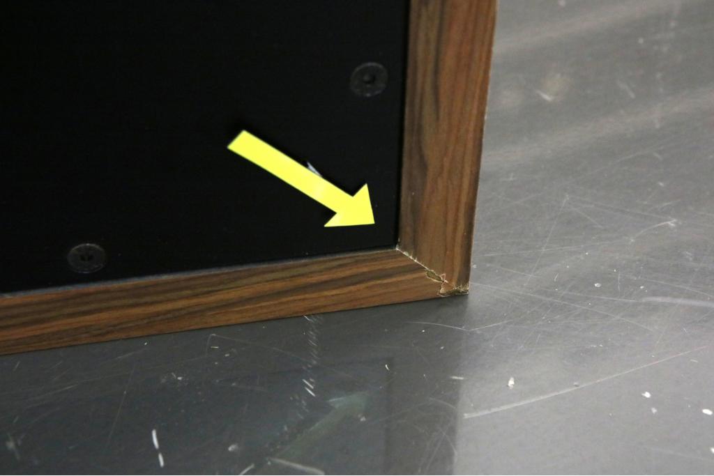 eine kleine Beschädigung an der der unteren Kante hinten links ist vorhanden.