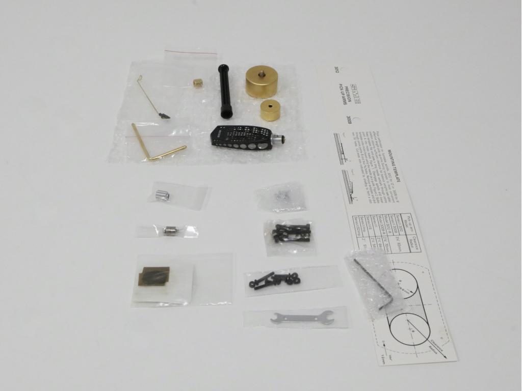Zubehör: Netzkabel, SME 3009 S2 Tonarm in der seltenen gold Version, verschiedene Abdeckungen für die Tonarmbasen