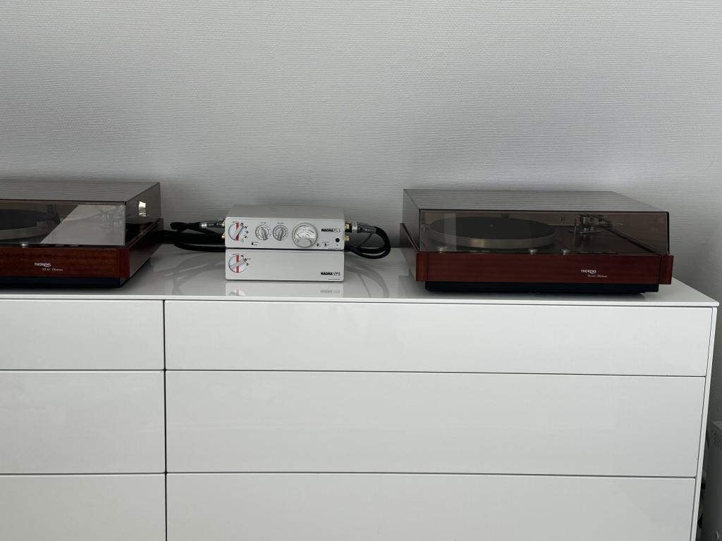 Der Plattenteller dreht sich schneller als gedacht. Da ich mich nicht auskenne, weiß ich nicht, wie ich es reduzieren kann. Beim Betätigen der Taste „Tonarm absenken“ hört man den Motor des Lifts, dieser scheint also vielleicht zu funktionieren. Ich selbst habe den Lift nie gebraucht, weil ja der SME-Tonarm montiert ist, der manuell abgesenkt und angehoben wird. Der Tonarm funktioniert meiner Meinung nach ohne Einschränkungen. Die originalen Kabel, die den Tonarm im Inneren des Geräts mit dem Port (den Anschlüssen auf der Rückseite des Geräts) verbinden, sind zwar vorhanden, sie wurden aber vom Tonarm getrennt, als ich vom Fachhändler ein sehr hochwertiges Kabel einbauen ließ. Das Kabel hat rund 1100 Euro gekostet. Das Kabel ist am Tonarm im Inneren des Plattenspielers angebracht, führt dann hinten aus dem Plattenspieler raus und zum Vor-Vorverstärker. Das Kabel ist für die Aufstellung auf dem ersten Foto gerade ausreichend. Der Plattenspieler wird in dieser Anzeige ohne (!) das Kabel angeboten. Ich würde das Kabel am Tonarm abtrennen und dem Käufer überlassen, das originale Kabel wieder selbst anzubringen. Wie das geht, weiß ich nicht, weil der Fachhändler es damals gemacht hat. Falls der Käufer es wünscht, würde ich das hochwertige Kabel jedoch dran lassen und mit verkaufen. Ich wünsche mir dann die Hälfte des ursprünglichen Kaufpreises für das Kabel, d. h. 550 Euro, extra. Das Kabel klingt hervorragend. Ich spiele Cello und bin Geigenbauer.
