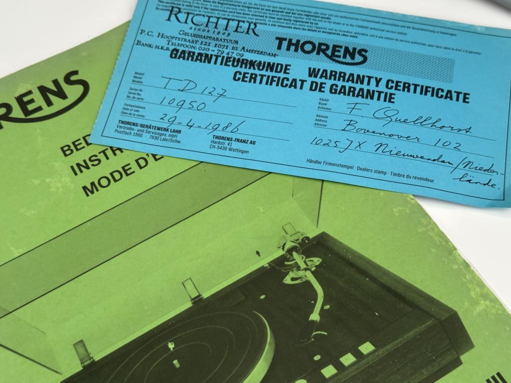 Garantiekarten aus dem Jahr 1986 und Bedienungsanleitungen sind vorhanden. Die originale Verpackung existiert nicht mehr.
