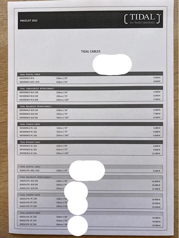 Top-of-the-Line TIDAL AUDIO Assoluta SC 256 speaker cables, 256cm/100''