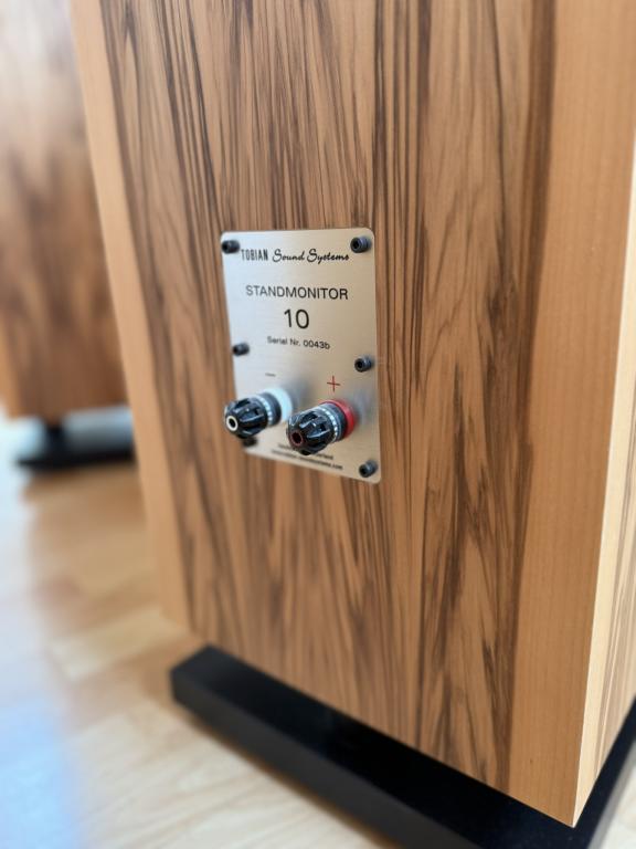 Ein feinst gearbeitetes Echtholzgehäuse (Vierlagen Ton-Holz) mit edelsten Nussbaum Satin Furnieren belegt, ein praktisch bündelungs- und auslöschungsfreies ConstantDirectivity- Horn, ein antrittsstarker Druckkammertreiber, ein ultraleichter Bass sowie eine minimalistische Weiche mit höchstwertigen Bauteilen eröffnen dieses Atemberaubende Klangerlebnis. Der Monitor 10 ist «Die Kleine» Autorität mit Live- Dynamik und überwältigendem Klang.
