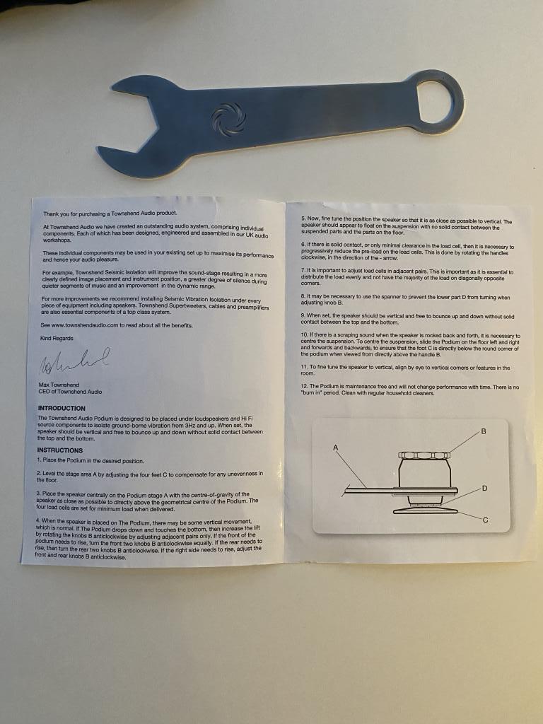 Following the sale of my Tannoy Kensington GR I part with these excellent Townshend Audio podium size 2 decoupling platforms which have very advantageously replaced the original spikes and then the Isoacoustics feet.