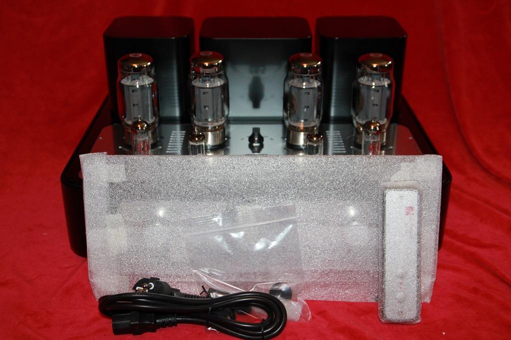 überaus kräftiger und schick geformter Röhrenvollverstärker mit 2x 100 Watt, Push-Pull Class A, 4x KT120 Tungsol, 2x 6N6P (ECC99), 2x 5687,
