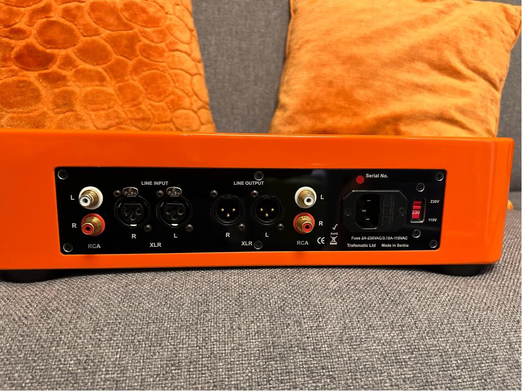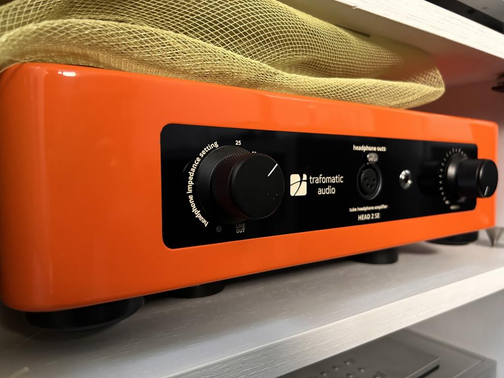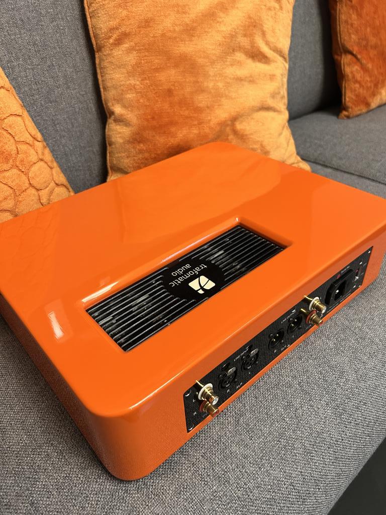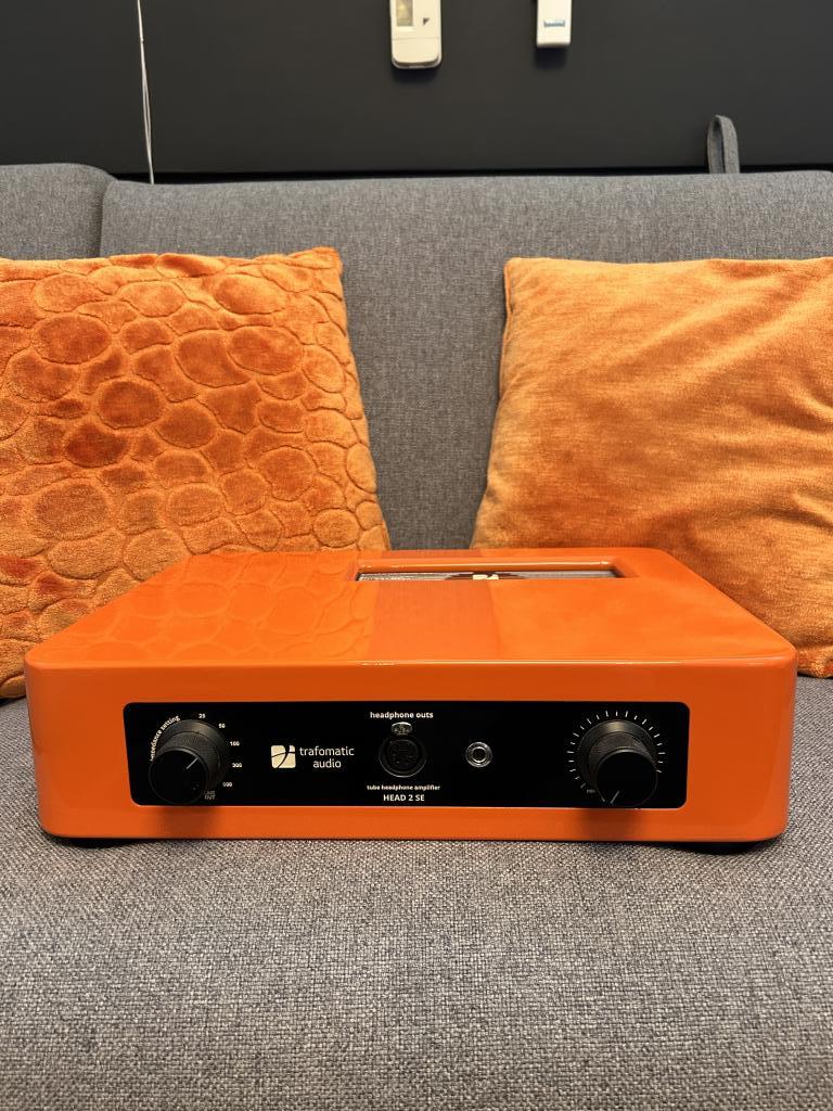 Amplificatore cuffie colore arancione, demo in showroom ma in pratica mai utilizzato avendo anche il modello superiore Trafomatic Primavera oltre ad altri amplificatori, quindi assolutamente pari al nuovo si aestetica che elettronica e valvole. Utilizzabile anche come pre amplificatore in sistema audio con diffusori con risultati altamente apprezzati. Fattura rivenditore a cliente finale