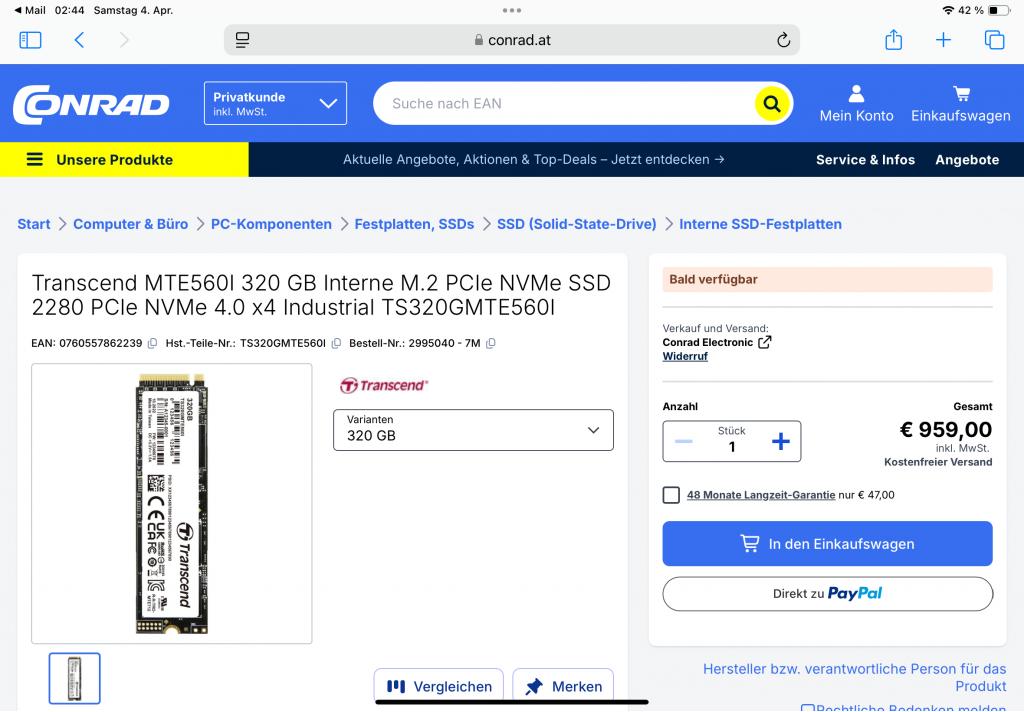 Superrare interne Festplatte mit 112 Lagen 3D Nand flash und SLC Mode Technologie - höchster Industriestandard und längste Haltbarkeit - gesuchte 320GB höchster Qualität, wird im Netz international gesucht (fast nur in 80GB lieferbar) und verteuert sich durch die KI- und Rechenzentrums- Nachfrage alle paar Wochen !!
