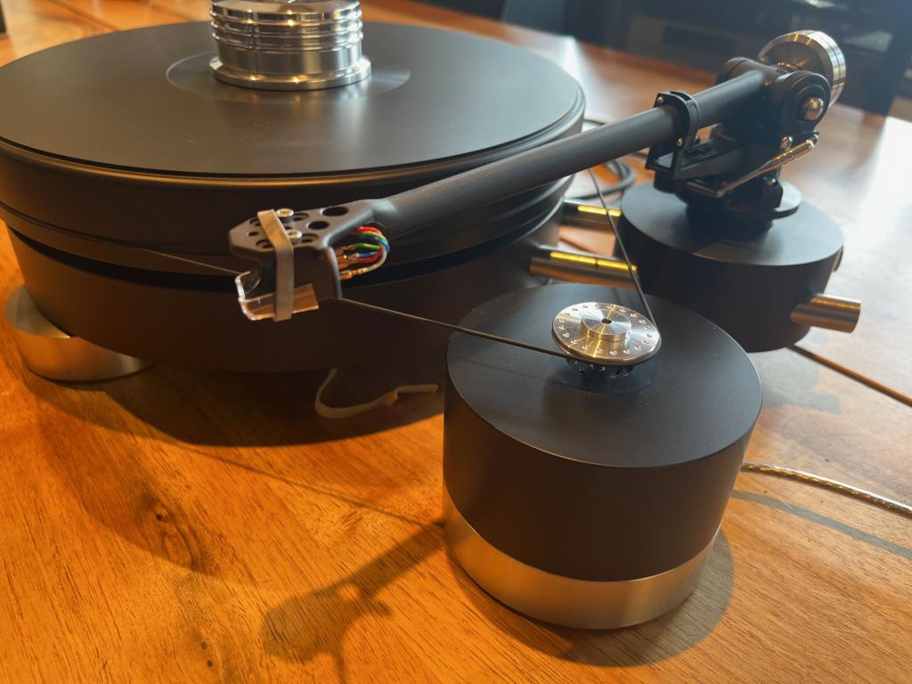 Neuwertiges Ausstellungsstück. System 0 Betriebsstungen. Chassis aus POM, Tonarm RB 300 , System Transrotor Uccello, Netzteil Konstant eins incl signierter Transrotor Schallplatte.