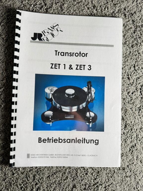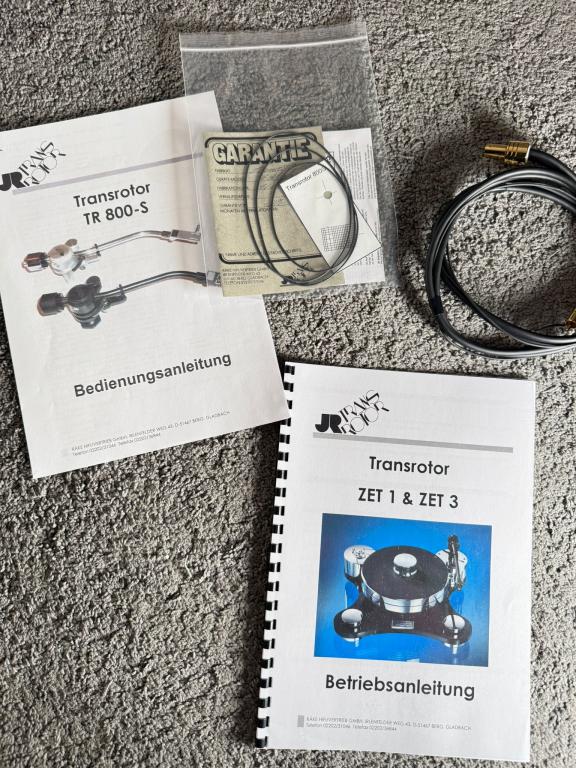 Im Lieferumfang enthalten ist: Transrotor Zet 1, Transrotor TR 800 S, Tonarmkabel, Dr. Fuß Netzteil, Anleitung, Motoruntersetzer in der originalen Verpackung.
