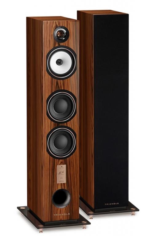 Antal und Comète sind die beiden Vorzeigemodelle der Marke. Sie stehen für die Philosophie der Firma, möglichst vielen unterschiedlichen Kunden guten Sound zugänglich zu machen, indem durch einfache Verfahren Emotionen geweckt werden. Der Standlautsprecher Antal 40th hat einen neuen, roségold anodisierten Hochtöner mit einer Kalotte aus Magnesium-Verbundwerkstoff, was für eine hohe Effizienz und eine kontrollierte Verzerrung sorgt. Magnesium verbindet zwei erwünschte Eigenschaften: Leichtigkeit und Steifigkeit. Er profitiert auch von zwei neuen Tieftönern. Die Verwendung einer Verbundstoffmembran aus Zellstoff, Flachs und Karbonfaser in Verbindung mit einem überdimensionierten Antrieb sorgt für ein beachtliches Fundament bei den tiefen Frequenzen. Der satte und klare Klang des Mitteltöners aus Naturzellstoff, für den TRIANGLE bekannt ist, vollendet in Perfektion dieses akustische Design mit erstaunlicher Leistung. Zu jedem Lautsprecher gehört ein Zubehörkit mit verschiedenen verstellbaren Spikes, die je nach Untergrund verwendet werden können. Sie ermöglichen eine Entkopplung durch die Eliminierung unerwünschter Vibrationen, so dass nur die Reinheit des Klangs bleibt. Die Edition zum 40jährigen Jubiläum wurde sorgfältig durchdacht und entwickelt, um Ihnen ein außergewöhnliches Musikerlebnis zu ermöglichen. Dieser Lautsprecher passt wunderbar in Räume zwischen 30 und 50 m²