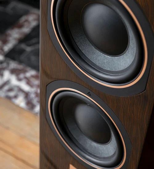 Der Antal 40. Standlautsprecher zeigt einen neuen Kalottenhochtöner aus roségold eloxiertem Magnesiumverbundwerkstoff, der einen hohen Wirkungsgrad für kontrollierte Verzerrung bietet. Magnesium vereint zwei begehrte Eigenschaften, nämlich Leichtigkeit und Steifigkeit. Es profitiert auch von zwei neuen Woofern.